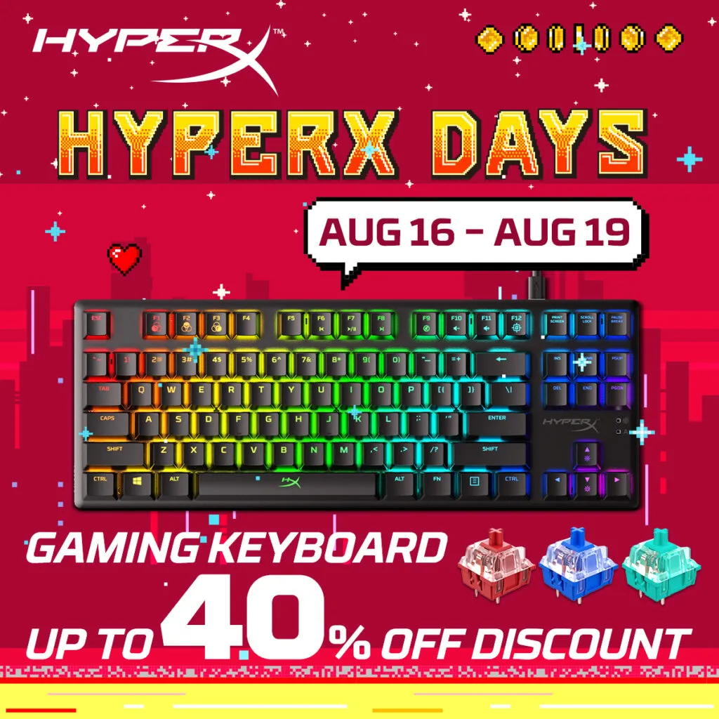 Starting from 12:00 am August 16 to 11:59 pm August 19, HyperX will have a huge promotion on the brand’s hot-selling products. From top-tier headsets with legendary comfort and amazing audio, pinpoint mice, to durable keyboards, HyperX provides peripherals with high quality catering to gamers’ need. Grab the deals while you can, because it’s gone for good when it’s gone! For more information, please visit HyperX brand store on Shopee.