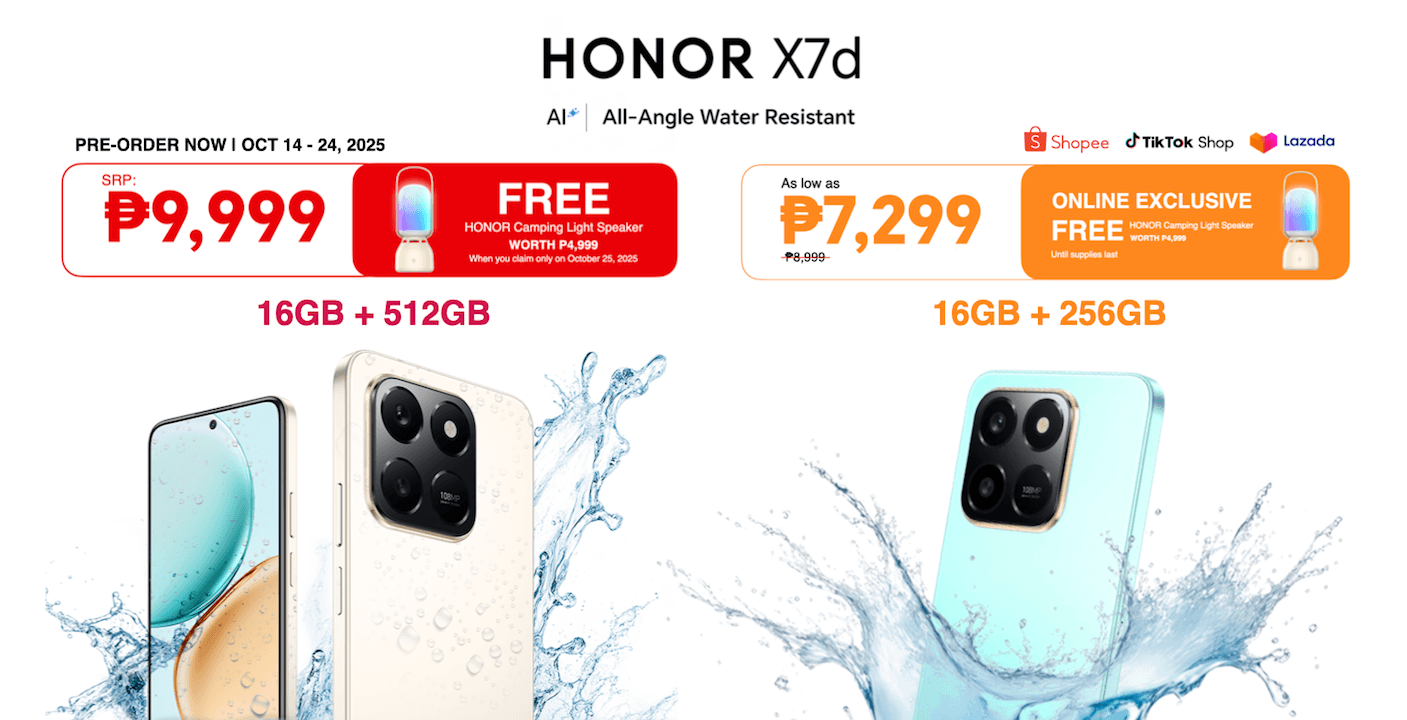 At the same time, the company launched the HONOR X7d, a budget-friendly AI phone priced from P7,299, offering IP65 water resistance, 108MP camera, AI Button, and MagicOS 9.0 based on Android 15. The model promises premium durability, a 6,500mAh battery, and AI features such as AI Eraser, AI Translation, and Magic Capsule, making it a strong entry-level contender in the local market.
