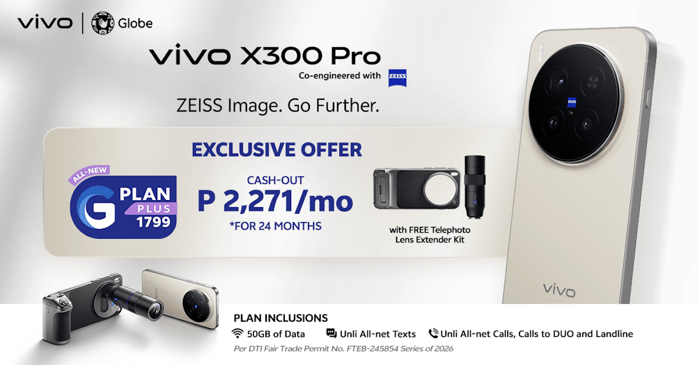 The vivo V60 is available in local concept stores, kiosks, and online platforms at prices starting at P28,999. Meanwhile, the vivo X300 Pro is bundled with a ZEISS Telephoto Extender Kit under Globe’s GPlan Plus 1799, with monthly fees structured over a 24-month contract.