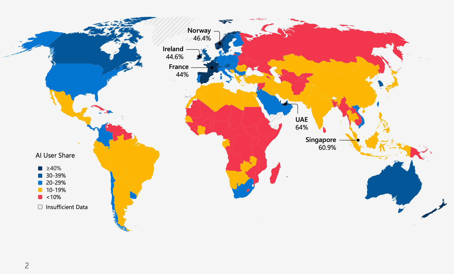 The United States complicates the narrative in a different way. It leads in AI development, from frontier models to infrastructure, but ranks lower in terms of population-level usage compared to smaller, more digitized economies. That disconnect shows that innovation leadership does not automatically translate into broad adoption. It also reinforces that adoption, on its own, is not a reliable indicator of economic advantage. What matters is how deeply AI is embedded into everyday processes, not how frequently it is used.